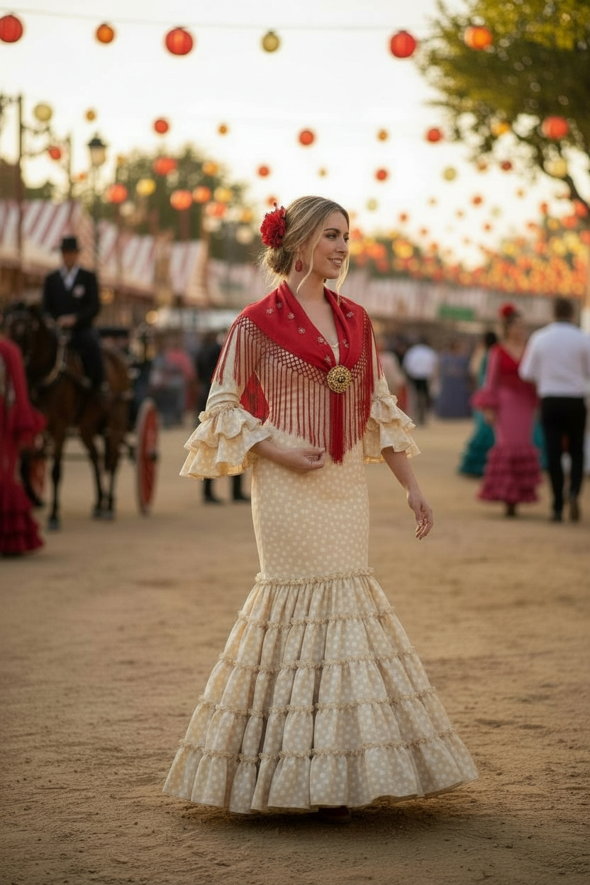 Etiquetas: barato beige canastero feria flamenca gitana lunares outlet rocio traje
